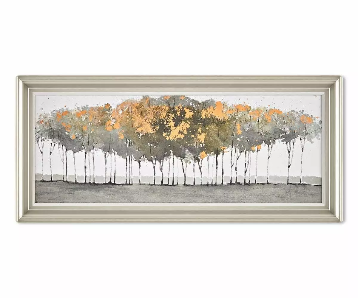 The Balanced Landscape Wall Decor brings an inspiring natural scene indoors in fresh, contemporary style. This large, print depicts a grove of trees in autumn, creating a subtle yet eye-catching work of art. Framed and foil stamped, this piece is ready to hang in a place that’s special to you.