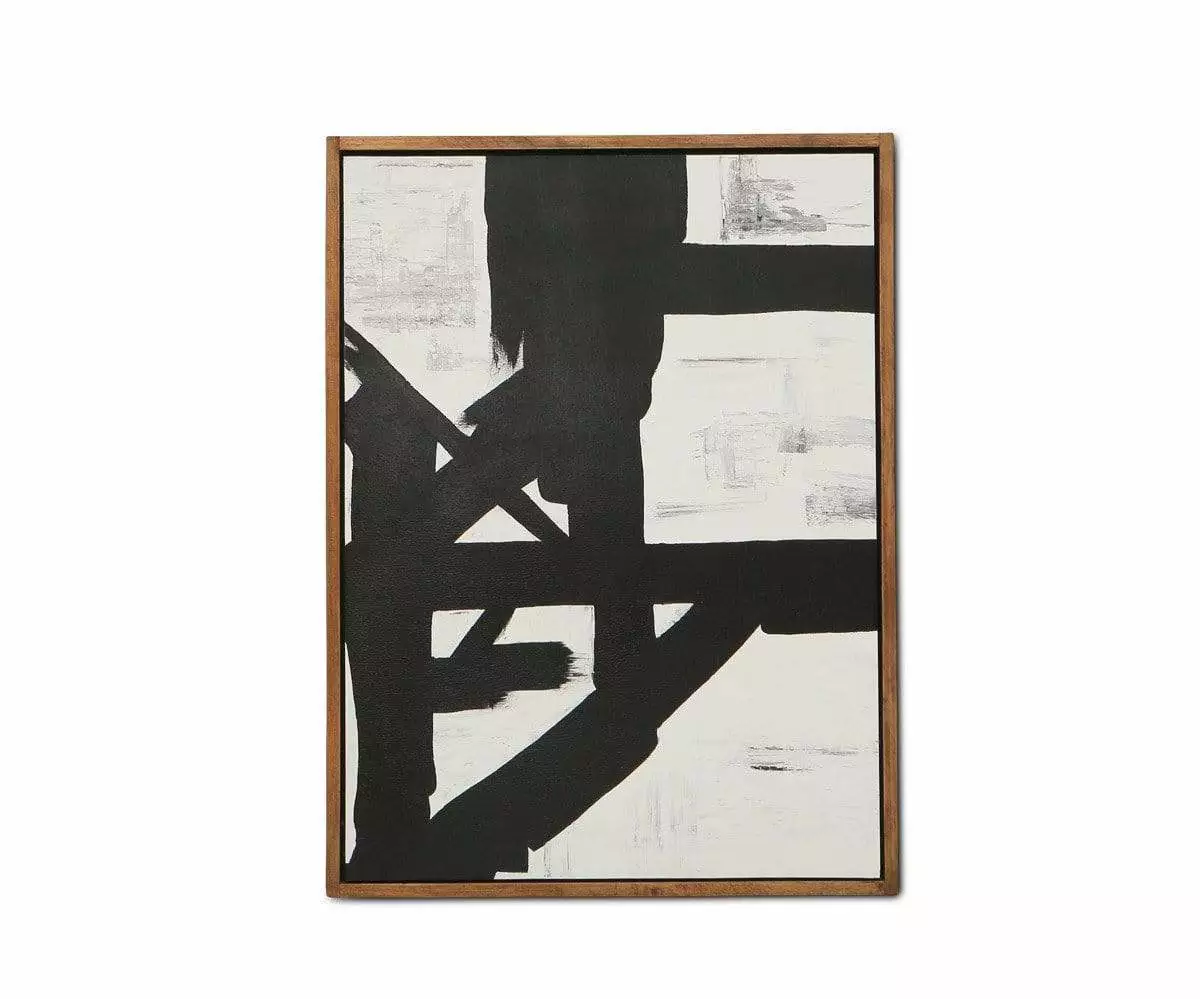 Create visual drama in any room with the Balkon Abstract Graphic Wall Art. Large brushstrokes in black boldly sweep across the canvas. Finished with a solid pine wood frame.