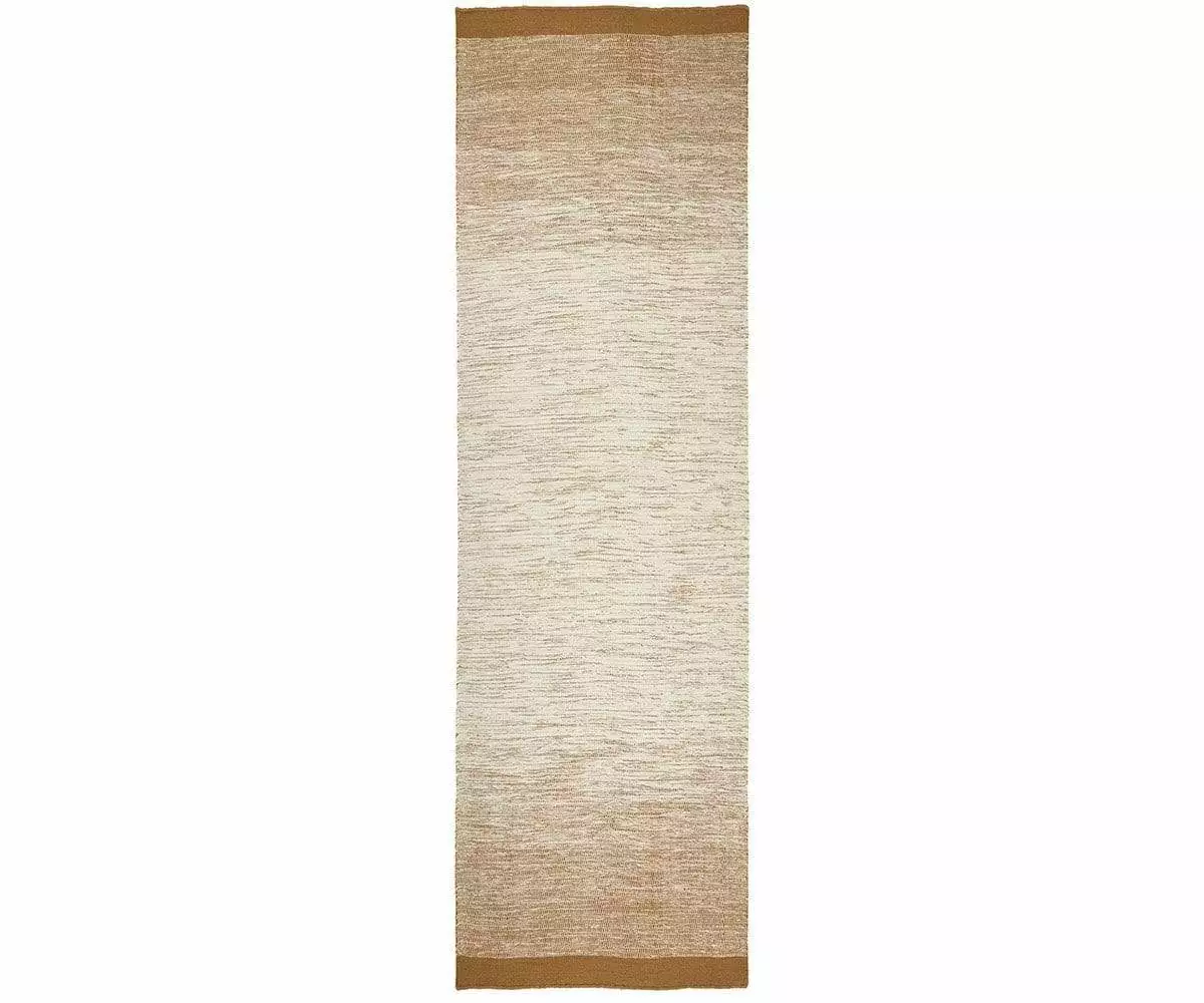 The Darvi Rug is artfully handwoven from a textured blend of wool and cotton. This uniquely beautiful rug comes in bright tones of ochre ombre. Darker outer tones slowly merge into lighter ones towards the center of this piece, creating a rug that is as artistic in its design as it is modern. Now available in multiple sizes, this rug can be chosen in a full size to complement an open floor plan and simultaneously enjoyed with a matching runner rug for a hallway or a bedside.