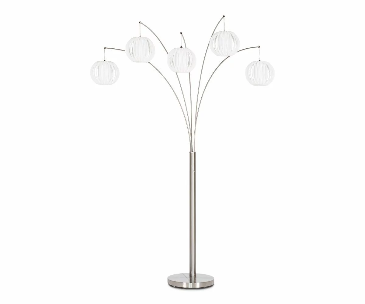 With white lantern-like shades, the Deion 5-lite Arch Lamp transforms any room into an enchanting space.