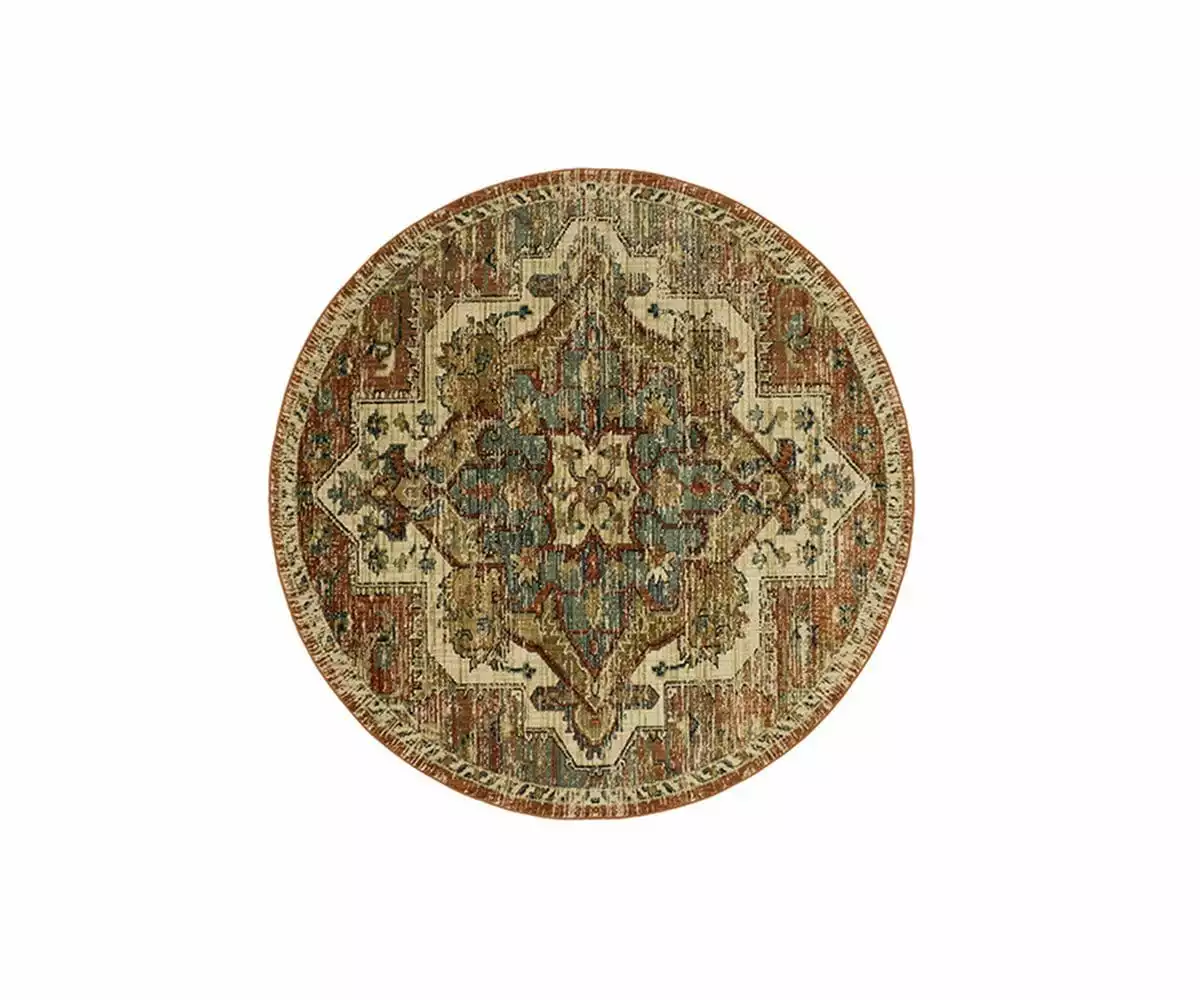 Persian-inspired with a touch of boho, the Kasbar Round Rug—designed and produced in the USA by Karastan, a leader in eco-friendly rugs—imbues your space with classic vibes. Faded red, turquoise, and sand tones get a vintage flourish, thanks to intentional distressing throughout. Made from EverStrandTM, a premium recycled fiber made using 100% recycled plastic bottles, this rug is incredibly durable with inherent fade and stain resistance, yet feels soft to the touch.