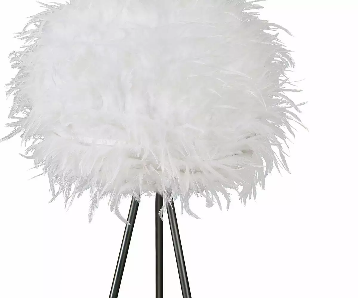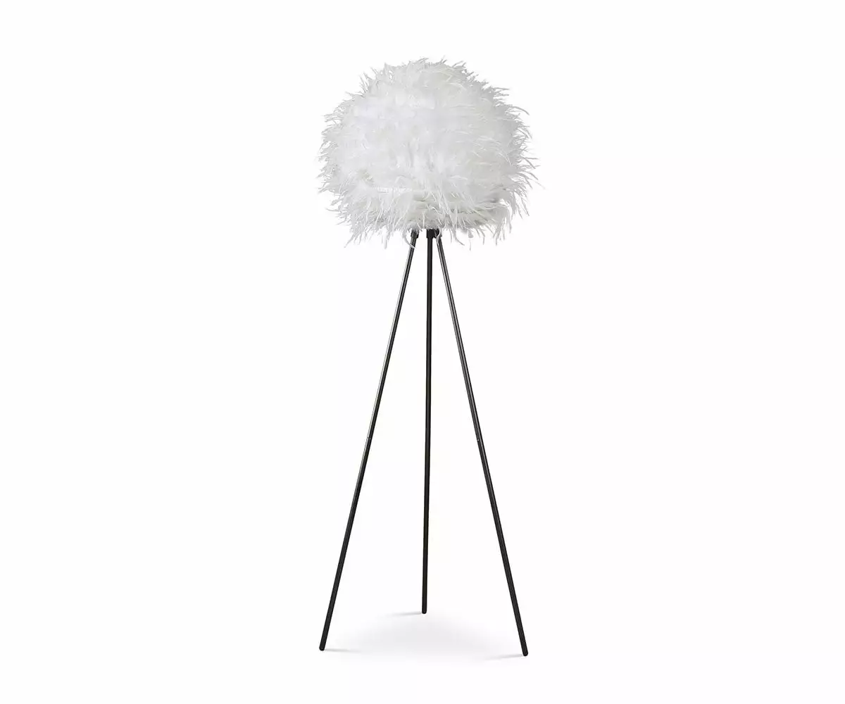 The Elfa Floor Lamp is an attention-grabber and easily creates a focal point in your room with its tall tripod iron legs and round lantern, covered in genuine feathers. This piece has pure personality is a delightful addition to your existing decor.