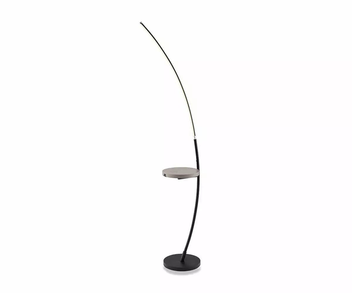 The Elska Floor Lamp infuses your space with contemporary style. This ultra-modern LED bar light brightens your space without the bulk of a traditional lampshade, and its striking, arched light provides a welcome partnership of form and function. This slender lamp does more than simply illuminate your space – the conveniently-placed metal shelf not only acts as extended surface space, it’s a place to rest your smartphone for wireless charging. Simultaneously charge other devices by plugging in to the handy USB port.* Layer the lighting from this futuristic lamp with your other overhead lighting for a bright, cheerful lighting scheme. *Charging capabilities will work for both iPhone and Android. Certain older models will not be able to charge wirelessly. A phone case may impede the charging of your device.
