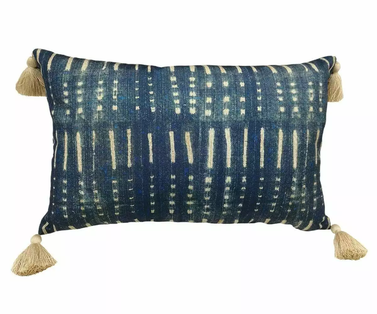 The Embroidered Batik Pillow cover features lively, eye-catching style. An homage to the intricate art of Indonesian batik, this pillow showcases a linear design punctuated with a carefully-placed dotted motif. Embroidered details bring this piece texture – topstitched silvery thread brings a whimsical, contemporary feel to this pillow, which is finished with elegant tassels. Made from a poly-canvas blend, this pillow cover is both durable and comfortable, and features a convenient invisible zipper closure. Easily layered with other pillows to provide a pop of color to your decor, this pillow also offers welcome support to those relaxing on a sofa or favorite accent chair. Note: pillow insert is sold separately.
