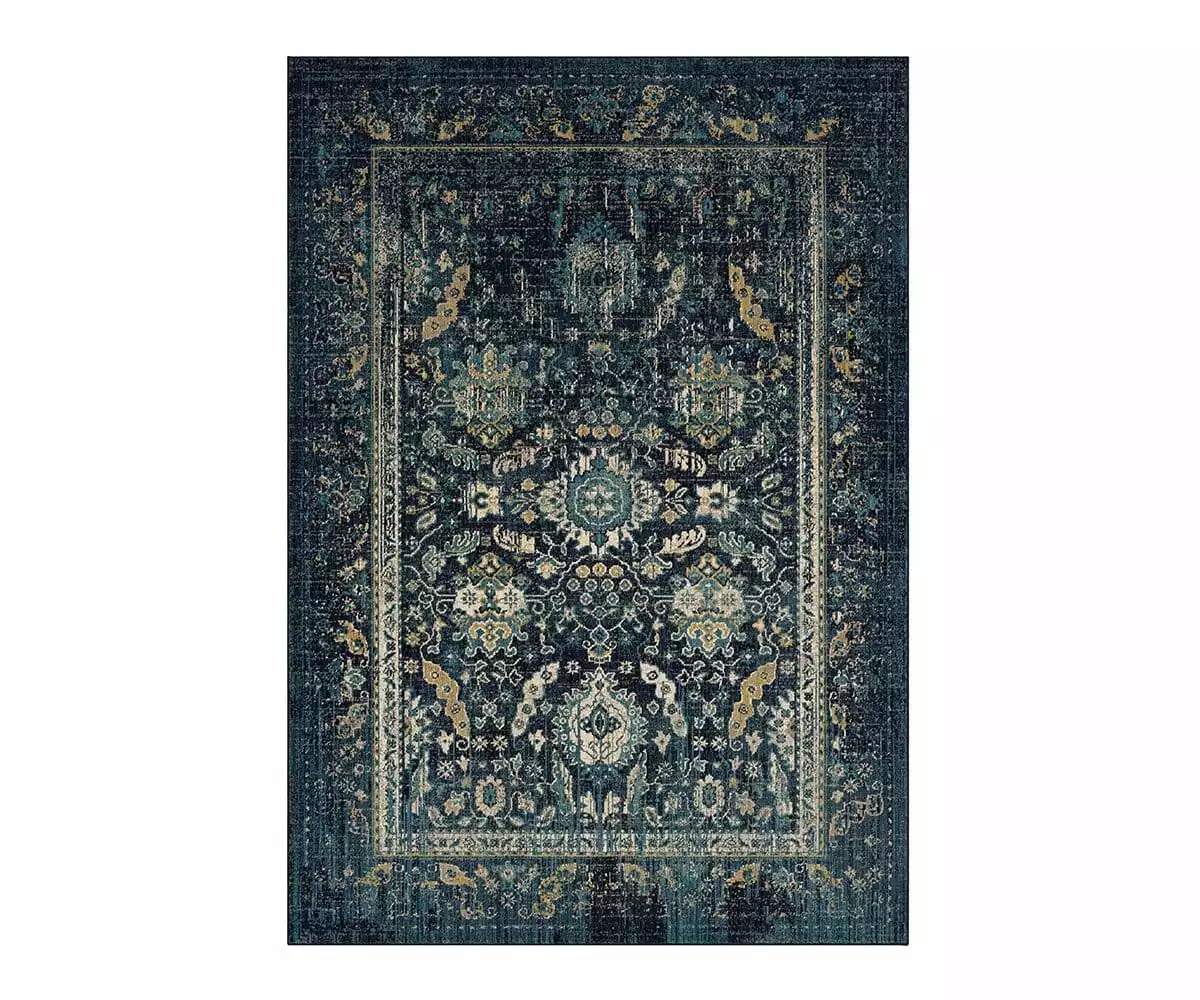 The Estate Cumbria Indigo Rug features bold shades of deep, soothing blue. A nature-inspired motif offers a touch of whimsy to this dark, elegant rug, and a deliberate patina lends a sense of rustic charm. This eco-friendly design was made in the USA from premium recycled plastic bottles that go through a transformation process to create strong, soft fibers. The result is this beautiful rug that offers superior durability and easy care while remaining remarkably soft to the touch.