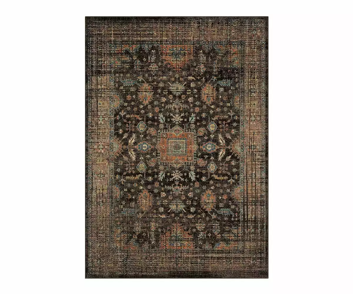 The Estate Somersby Black Rug has a traditional feel, and showcases darker tones meant to anchor any aesthetic. A natural patina lends this piece a sense of rustic, modern feel. This eco-friendly design was made in the USA from premium recycled plastic bottles that go through a transformation process to create strong, soft fibers. The result is this beautiful rug that offers superior durability and easy care while remaining remarkably soft to the touch.