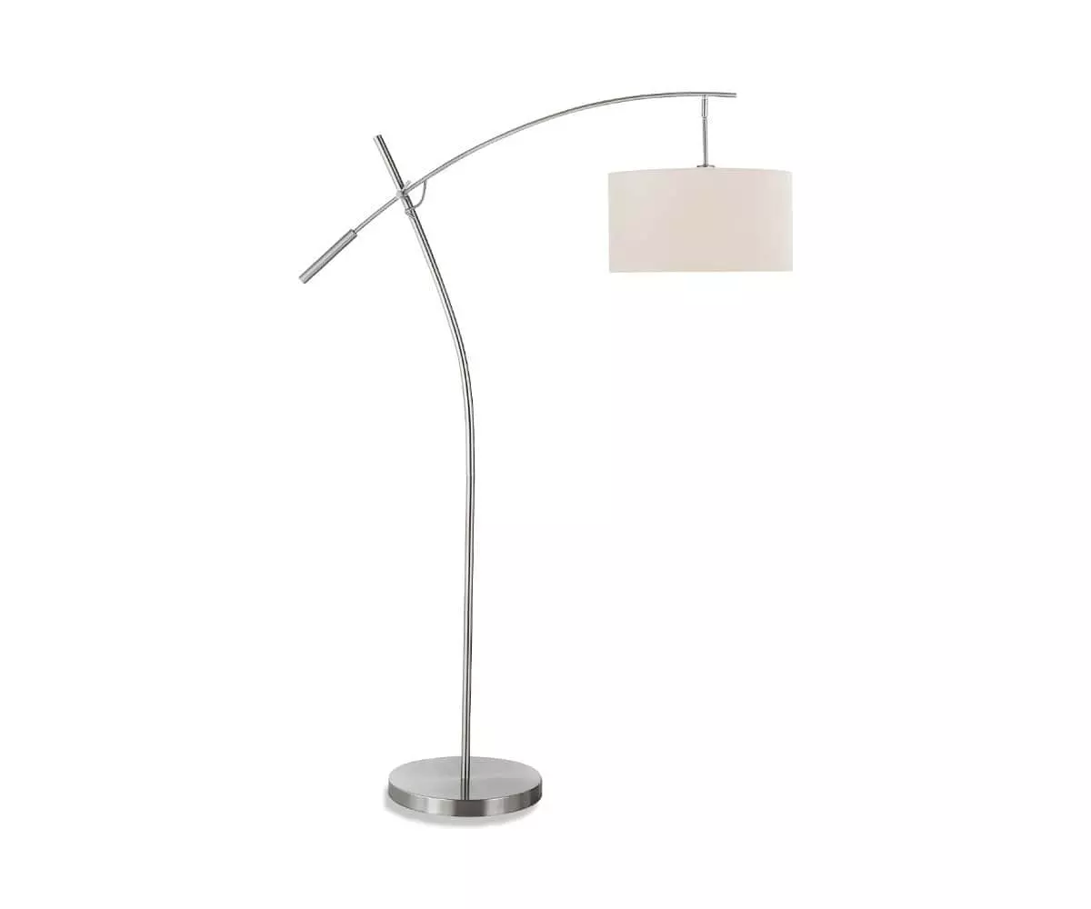 The grand size of the Ian Floor Lamp makes for a wealth of welcome light in your space. A white fabric shade lends itself to soft, white lighting, while a metal base acts as a sturdy support. This tall lamp is finished in brushed nickel, and features adjustable pivoting capabilities which enables it to shine more brightly on your intended surfaces. The arched, modern design paired with a classic cylindrical shade allows for this lamp to seamlessly fit into any number of decor styles, and adding this piece as an element within your layered lighting scheme ensures that you will be able to enjoy a room full of illuminated warmth and comfort.