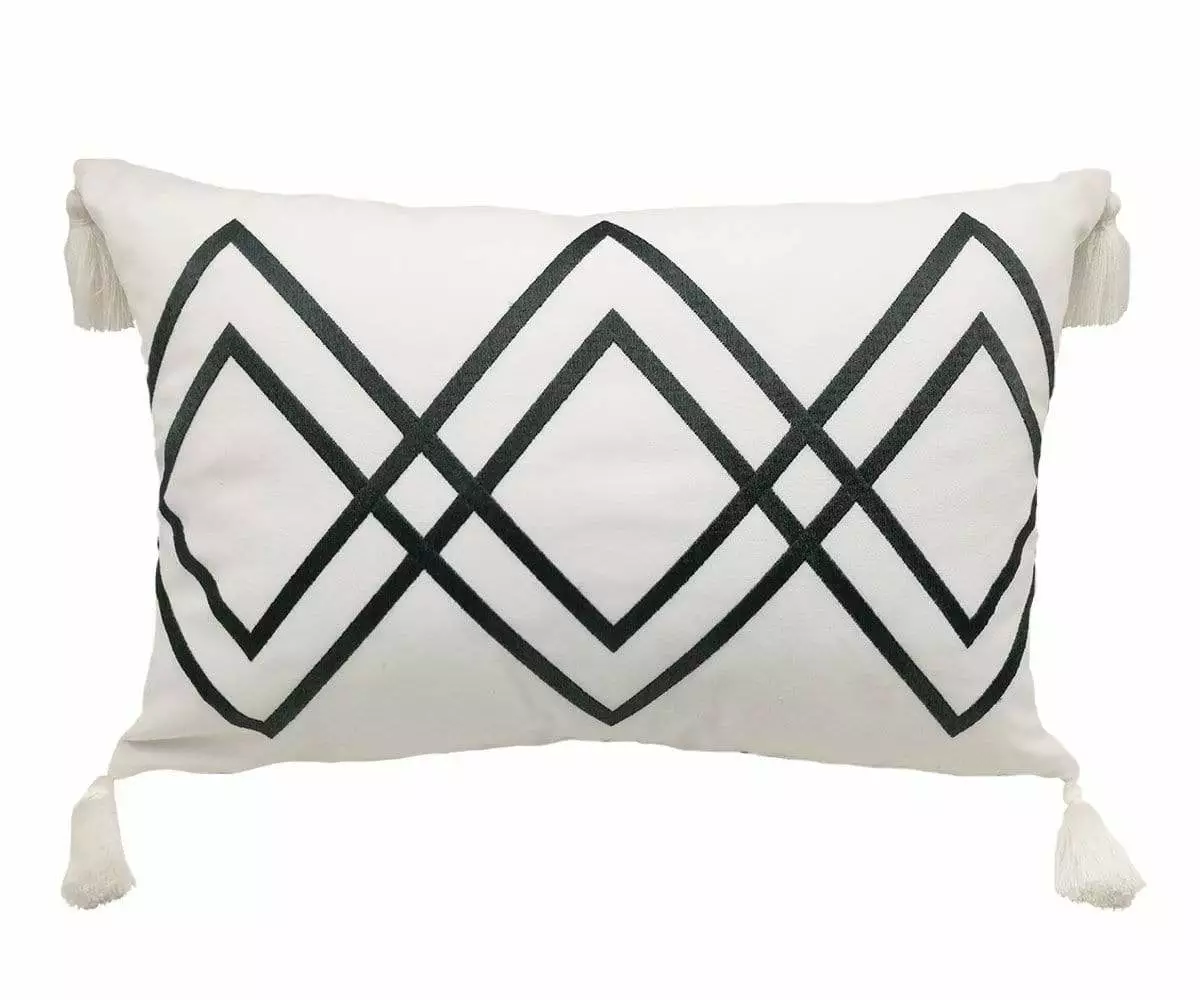 The Intersecting Diamonds Pillow features a minimalistic, eye-catching pattern that brings welcome liveliness and dimension to your space. This pillow is made from a soft cotton canvas, and is easily layered with other throw pillows for added comfort on your favorite sofa or accent chair. The relaxed slub weave of this material brings a sense of rustic elegance to your room, while additional top-stitched embroidery accents lend this pillow elements of texture. An invisible zipper closure is the finishing touch to this incredibly versatile pillow, which is at home among any number of decor styles. Note: pillow insert is sold separately.
