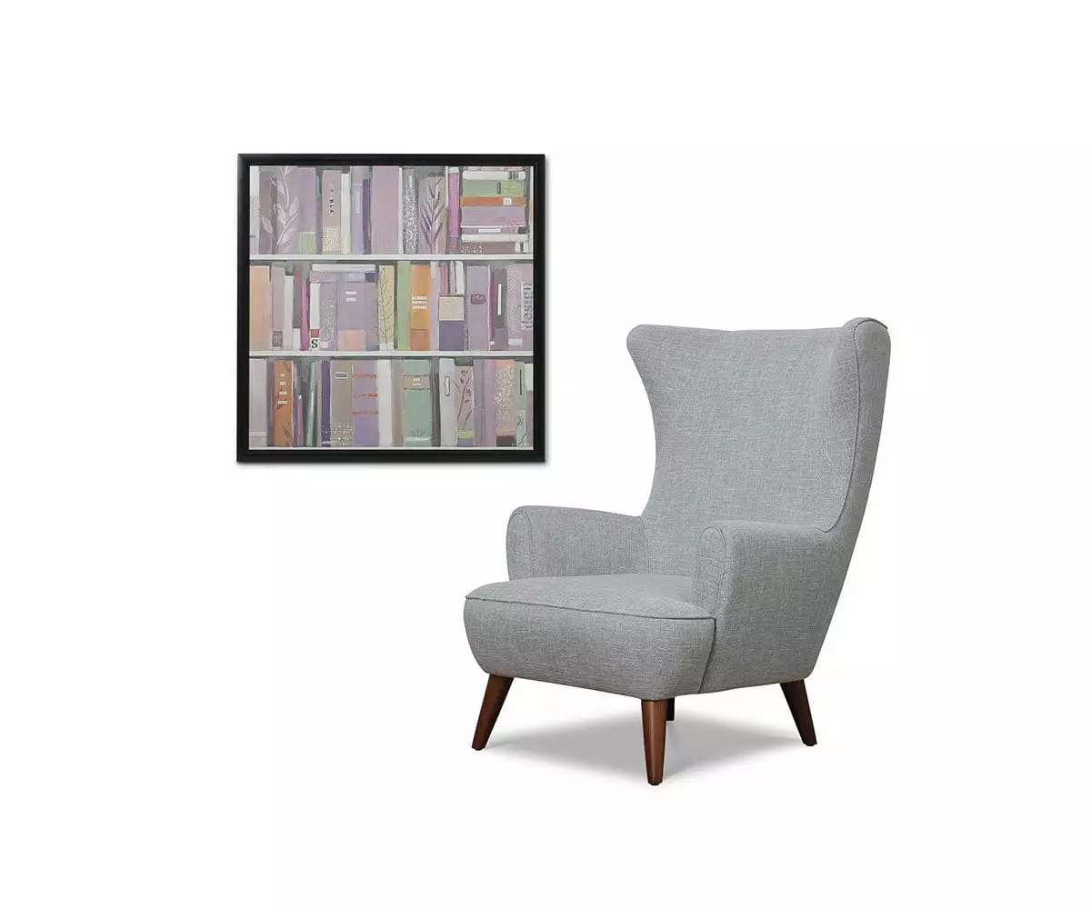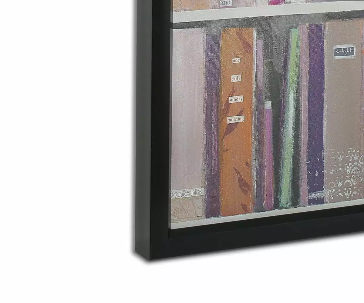 The Introspective Composition evokes the cozy, welcoming feeling of a book-filled room with every glance. A perfect art piece for any bibliophile’s wall, it’s equally at home in an office, living room or bedroom, and especially fitting for any beloved reading nook. Look closely and see fanciful flowers scattered across those rows of books, adding whimsy to this already charming work of art. It comes beautifully framed and under glass.