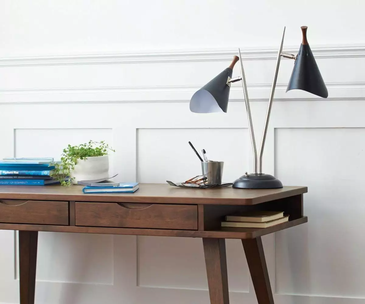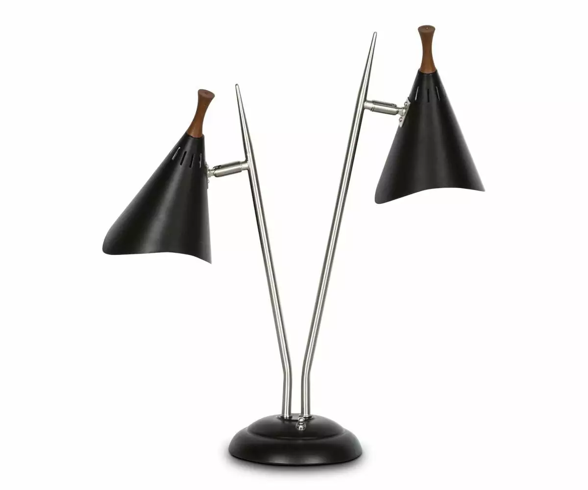The Kabrino Table Lamp infuses style and flexibility into your home or office space. Black with satin steel accents, this every day lamp offers two adjustable shades to shine a light on your most important projects.