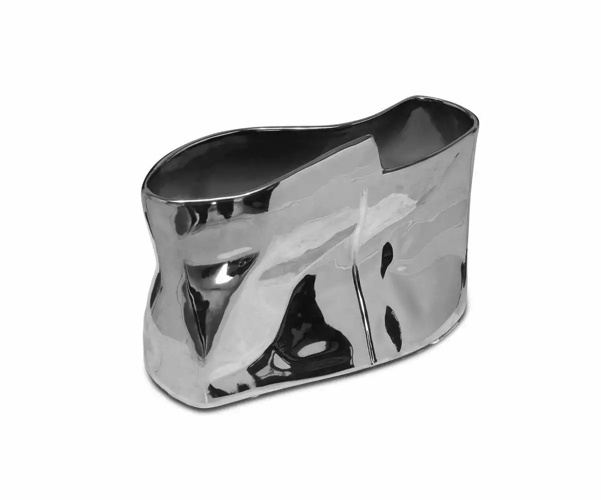 Create stunning contrast for your floral arrangements with the Klimat Vases. Crafted from ceramic with a metallic silver finish, they offer a molten metal aesthetic.