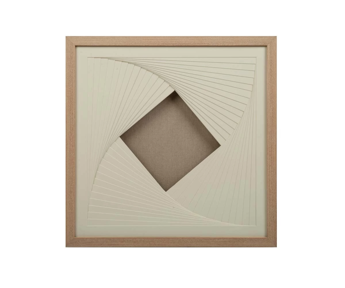 Layered Reflection Wall Art is a piece that showcases a seemingly uncomplicated compilation of paper. Layer upon layer of deliberately angled sheets create a modern, multidimensional work of art. The soothing hues of the cream-colored paper blend with the neutral tones of the wooden frame, leaving the viewer of this piece with a clear sense of the depth of true artistry. Layered Symmetry and Layered Tranquility each sold separately.