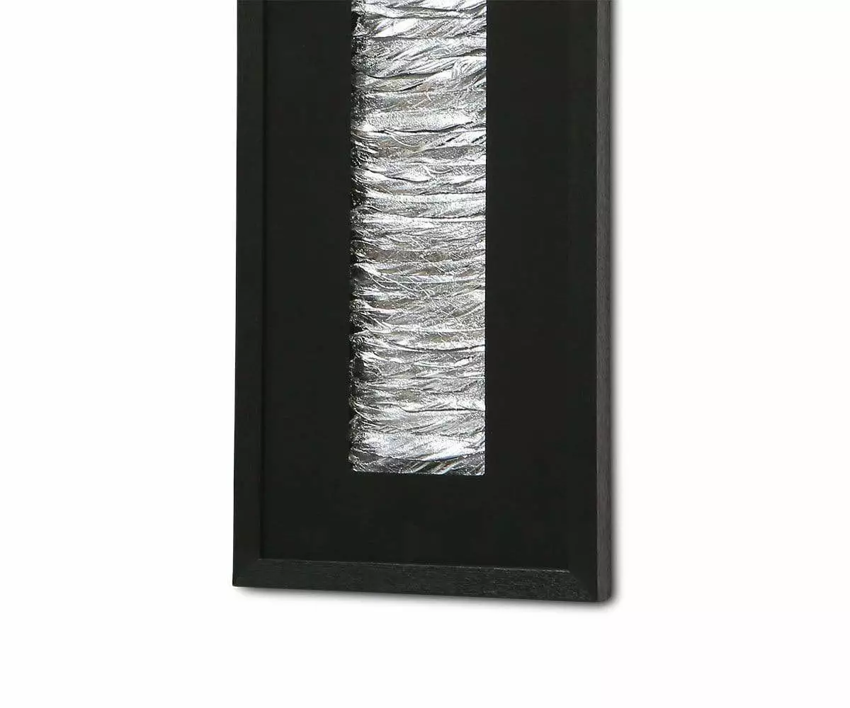 The Linear Strength Art is the ideal objet d’art for any room. An upscale wooden shadowbox houses unique art made from metallic painted goose feathers.