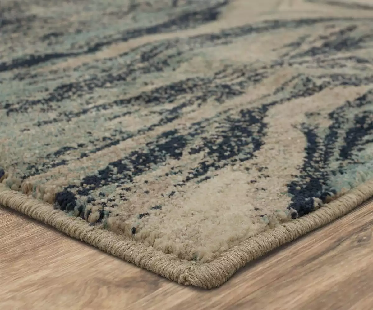 The Meraki Alchemist Lagoon brings a watery element to any space. Muted neutrals are intermingled with the ebb and flow of lagoon-blue and deep navy to create an abstract oceanic design that’s as unique as it is eye-catching. This eco-friendly design was made in the USA from premium recycled plastic bottles that go through a transformation process to create strong, soft fibers. The result is this beautiful rug that offers superior durability and easy care while remaining remarkably soft to the touch.