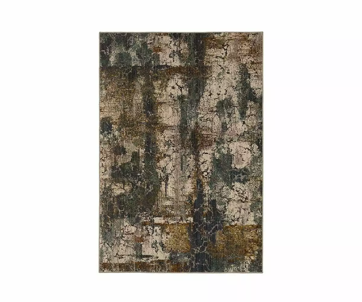 Designed and produced in the USA by Karastan, a leader in eco-friendly rugs, the Cave Creek Rug infuses your bedroom, living room or dining room with earthy, modern vibes. The design blends abstract lines and shapes with grey, golden, steel and rust hues, evoking images of natural stone formations. Made from EverStrandTM, a premium recycled fiber made using 100% recycled plastic bottles, this rug is incredibly durable with inherent fade and stain resistance, yet feels soft to the touch.