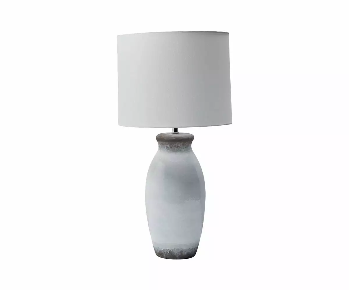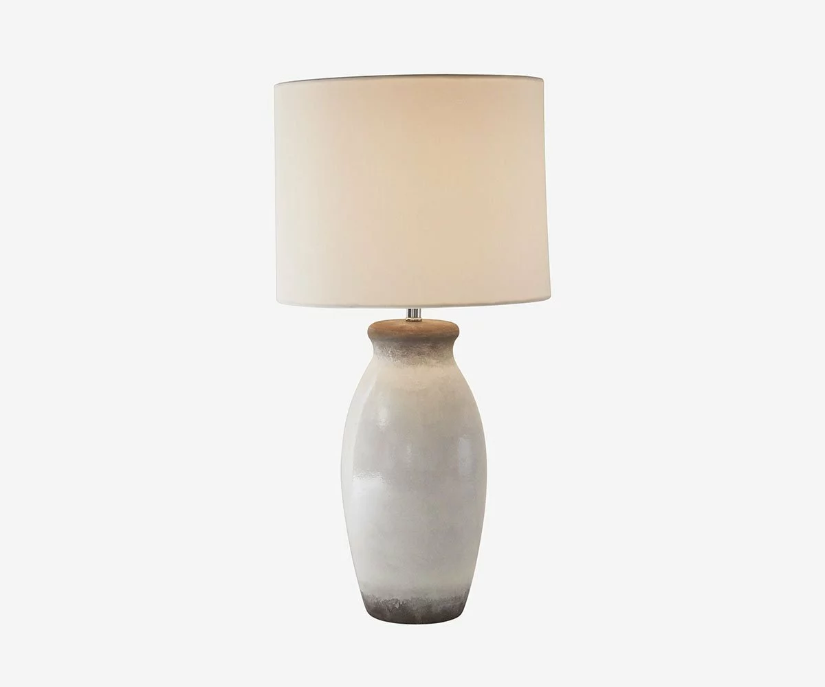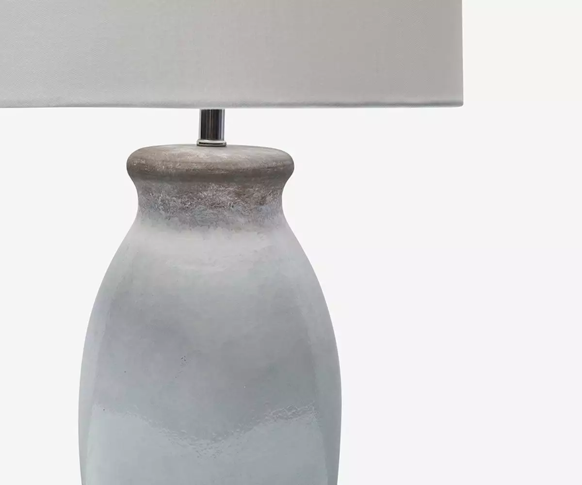 The Orka Lamp features a gracefully shaped terra-cotta base in a glossy white finish. This glaze gives way to the natural, hand-wrought look of unpolished earthenware, lending this lamp a certain artistic sensibility.