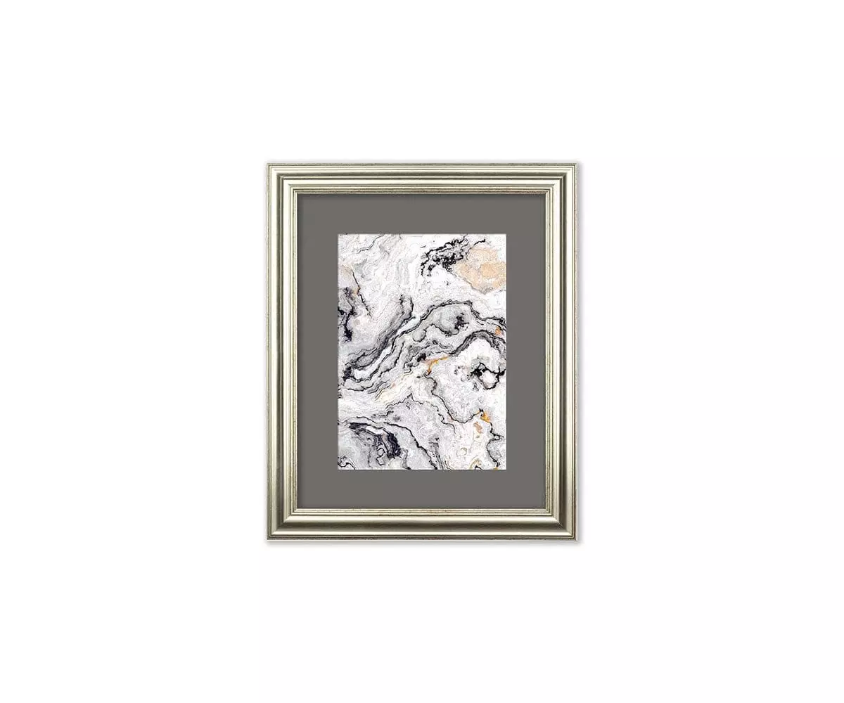 The swooping lines of the framed Silvery Surrealism II print are both abstract and opulent. Reminiscent of marble with its ebbing and flowing striations, this piece brings a sense of elegant minimalism to any room in which it is displayed. Hang this piece by itself for a solo statement, or pair it with the framed Silvery Surrealism II print to complete the look.