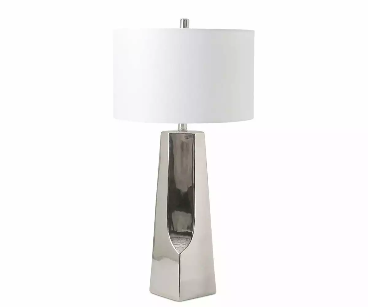 A smooth, sculptural stroke interrupts the otherwise sleek, geometric lines of the Skyldr Table Lamp. The unique artistry of its shiny metal base makes this piece striking whether illuminated or dimmed. Add an attention-grabber to your table or desktop and bring contemporary style to your space.